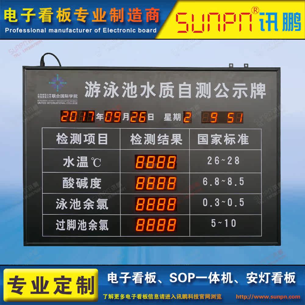 Custom LED swimming pool water quality detection display screen residual chlorine water temperature detection plate acid pH PH value mining and watching board