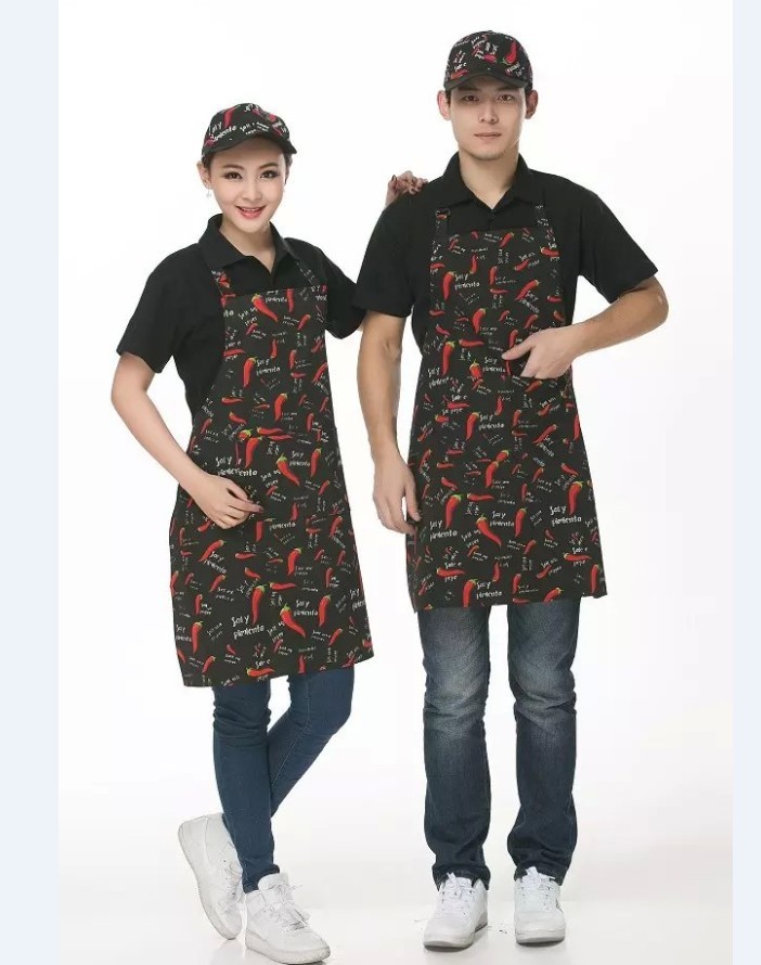 Black and white checked apron Little pepper apron Colorful striped apron Coffee white apron Knife and fork Black apron Coffee black apron Knife and fork Sun hat Black and white checked sun hat Colorful striped sun hat Black and white striped sun hat Hot pepper sun hat Coffee white striped sun hat