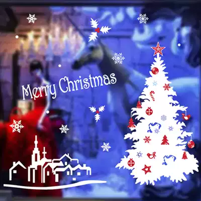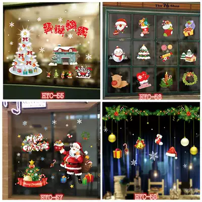 Christmas decorations window door glass static stickers old man head Christmas tree deer snowman dress sticker