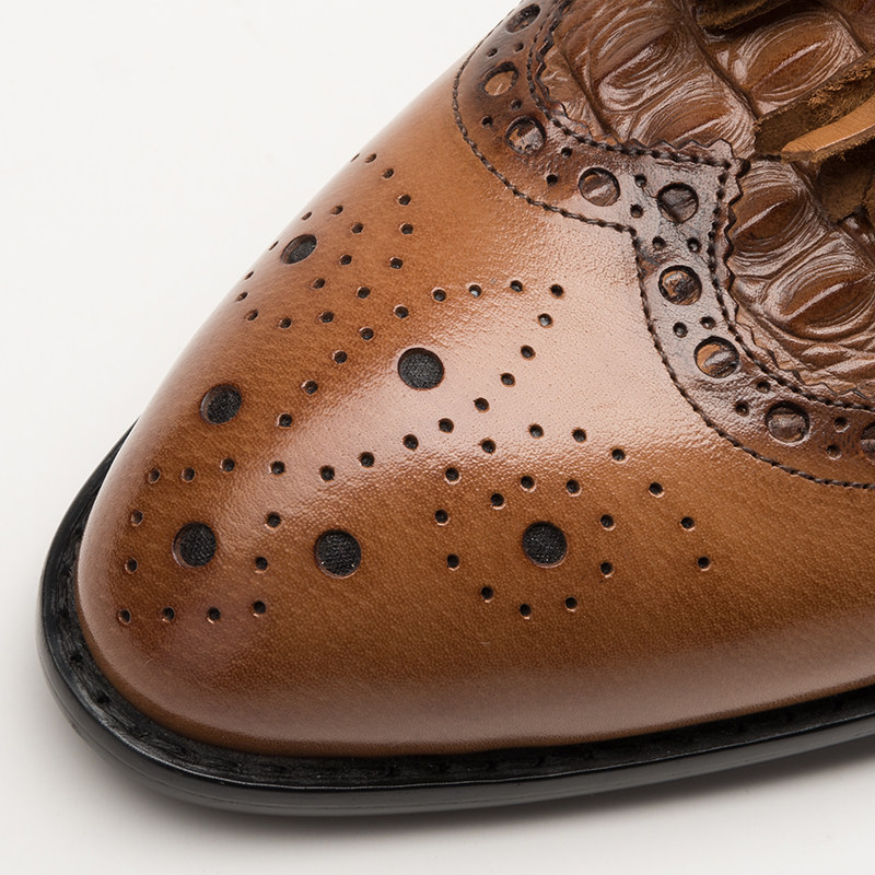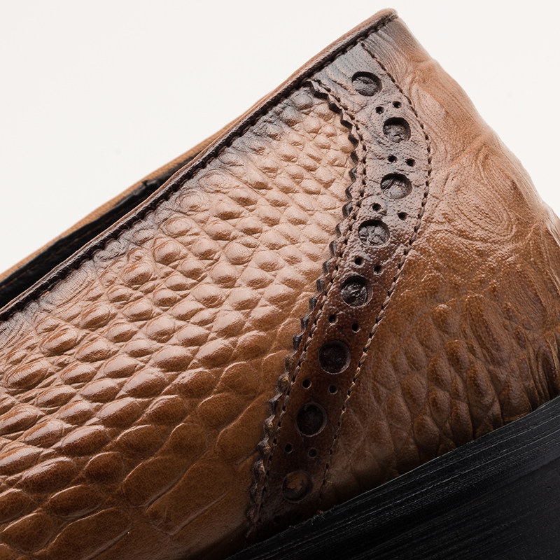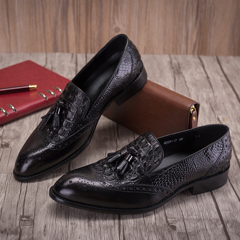 Business tassel set foot crocodile leather pattern brogue men's leather shoes embossed one pedal khaki camel men shoes