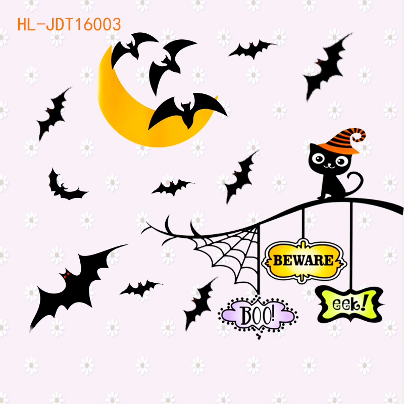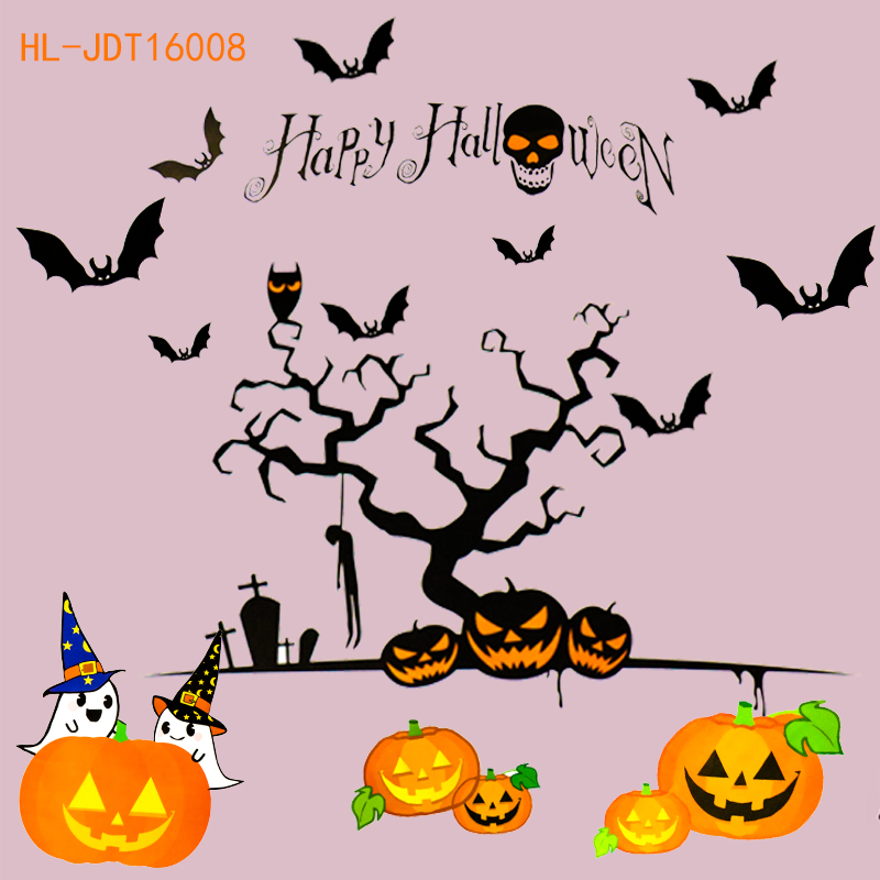 Halloween Decorations Glass Sticker Painting Mall Shop Window School Dining Room Stickers Pumpkin Witch Ghost Cartoon Wall Sticker