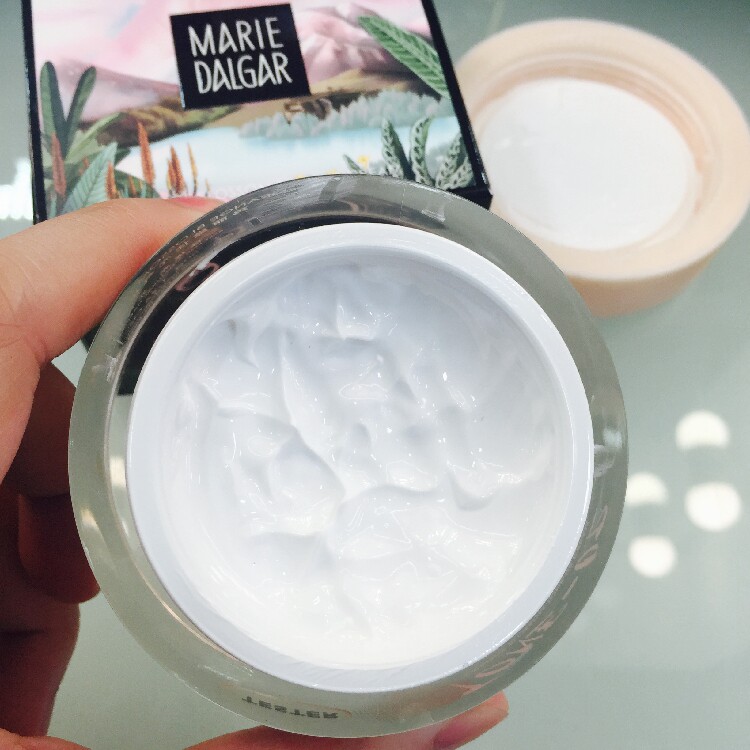 Mary Deja Meta gas orange blossom face cream with a smear of bright and moist white moisturizing sloth cream