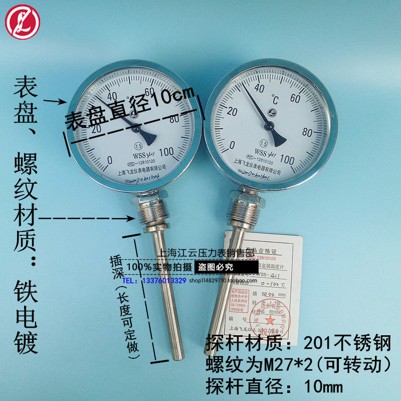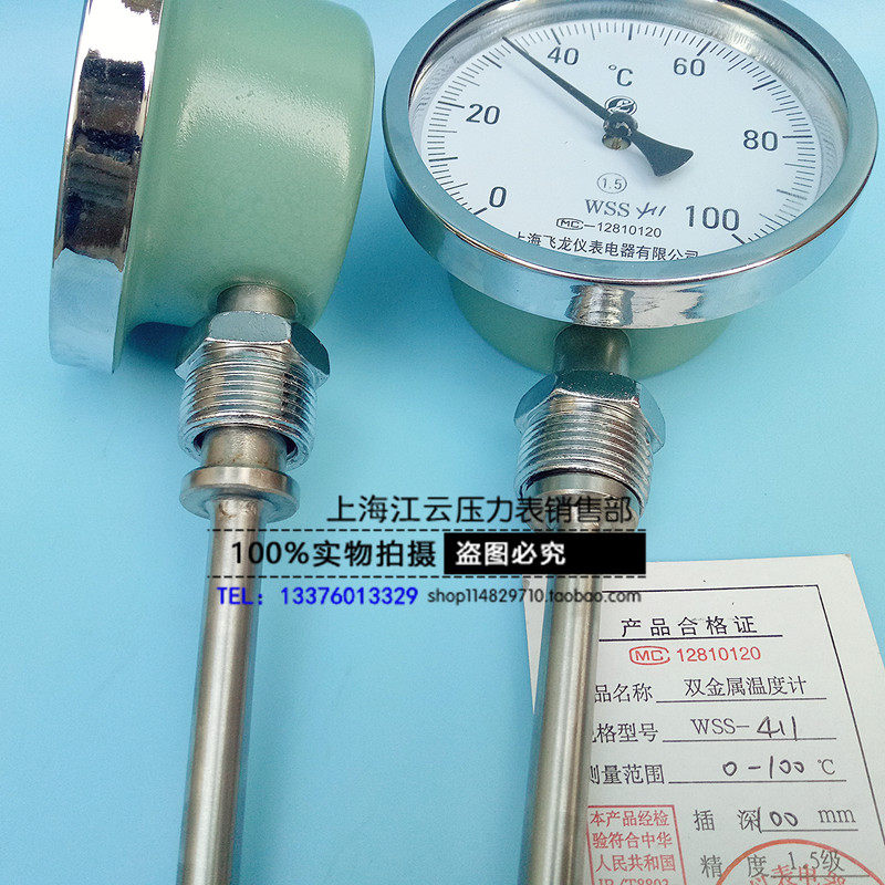 Shanghai Flying Dragon WSS-411 Pointer Bimetal Thermometer Boiler Piping Table Industrial Thermometer Radial