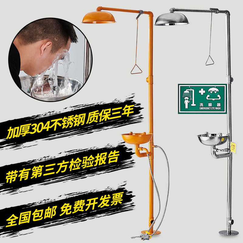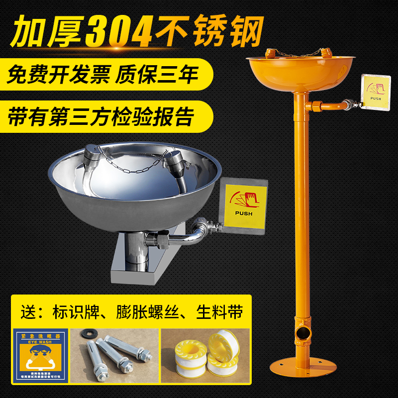 Wall-mounted Eyewash Vertical Washers Spray Composite Type 2 Water Inlet Spray Composite Type 1 Water Inlet Simple Type Wash ABS Yellow Wall-mounted Eyewash Machine With Pedalling ABS Spray Hanging Wall Type Eyewash