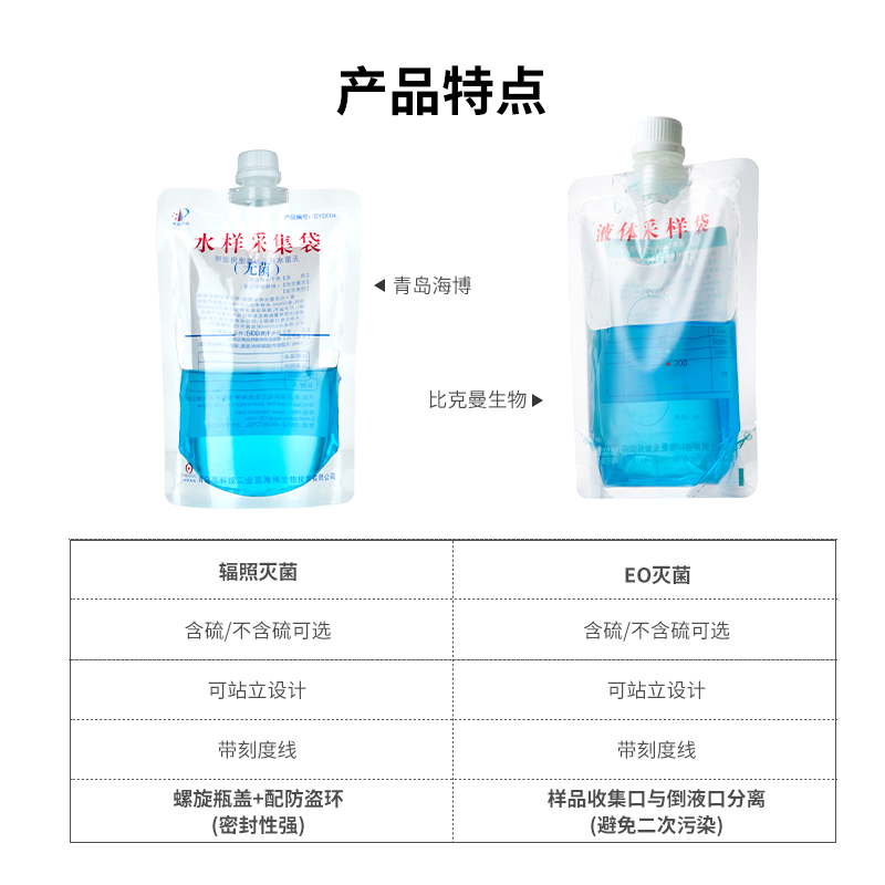 Sea Boon Water Samples Collection Bag Sterile Water Quality Sampling Bag With Sulphur 200ml Livable Plant Specimen Saliva collection