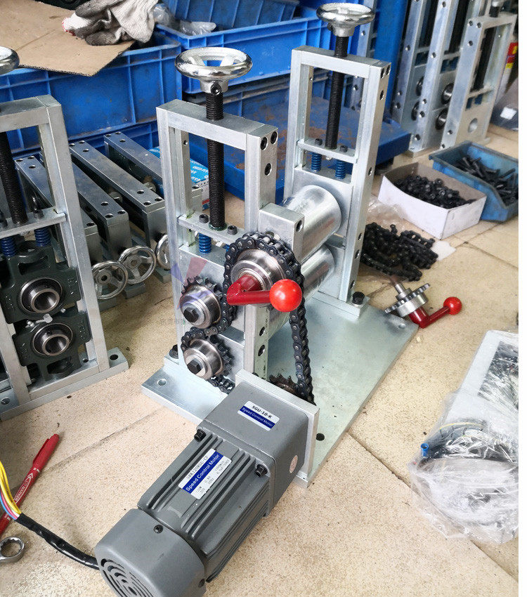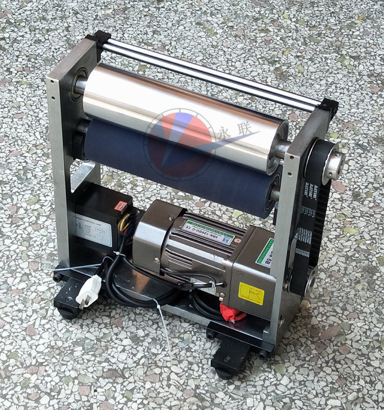 The feeder tractor drum conveying equipment receiving material and discharging coating film actively drives the roller line of the press roller line.