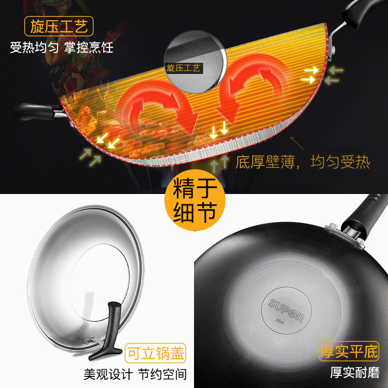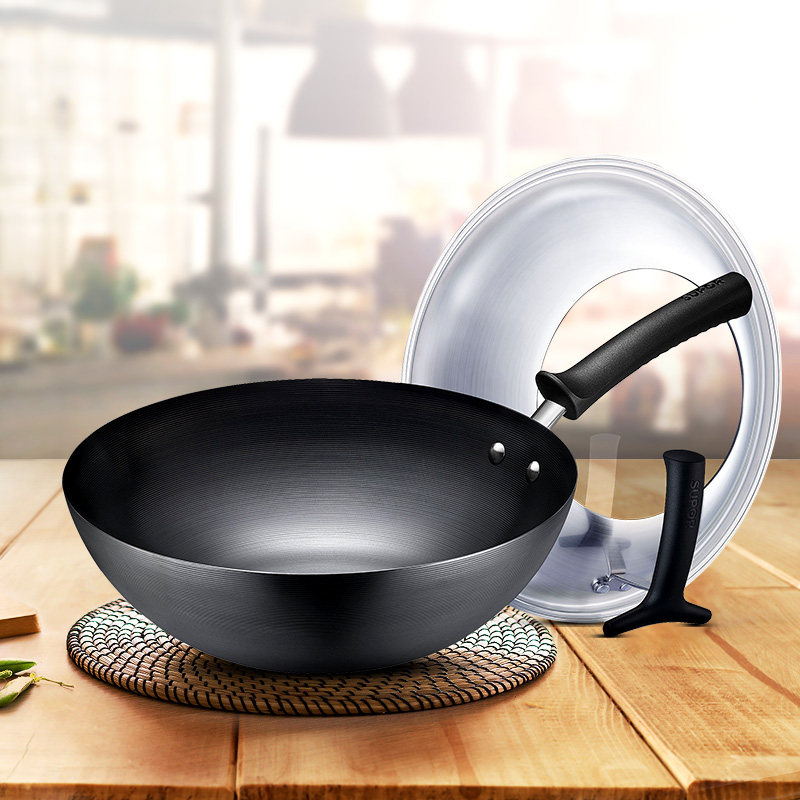Suber iron pot old-fashioned home wok real stainless uncoated induction cooker wok official flagship store