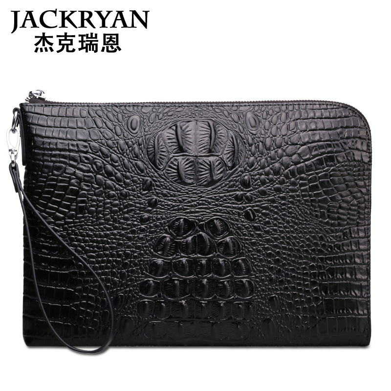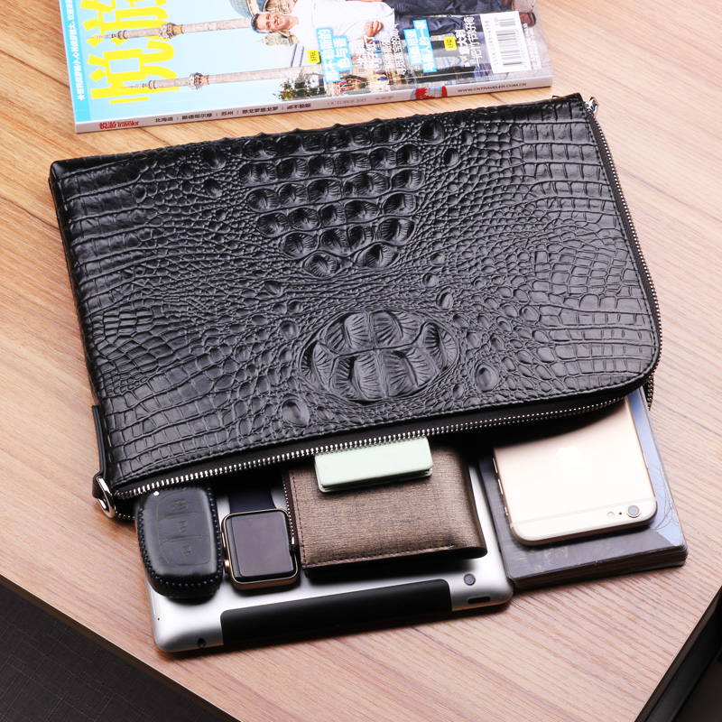 Crocodile pattern men's handbag clutch bag cowhide envelope bag clutch clip bag men's bag leather new trendy large capacity