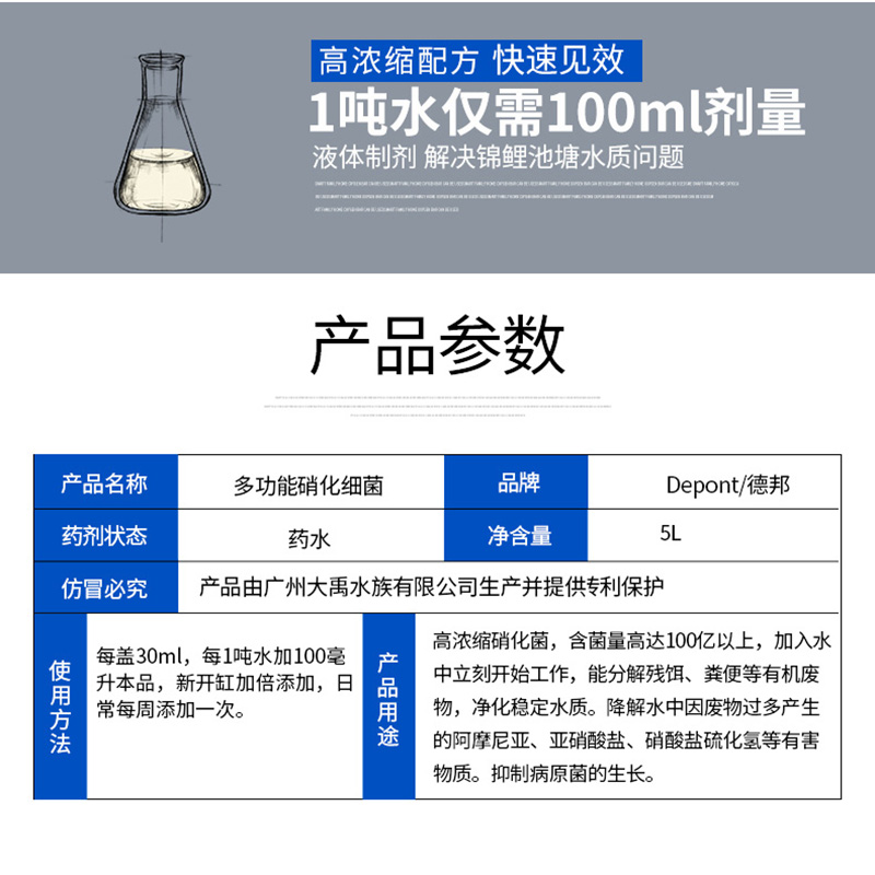 Depontaqua Debon Condensed Nitrobacteria Brocade Carp Pond Water Purification Decomposition Fish Manure Clear Water Quality 5L