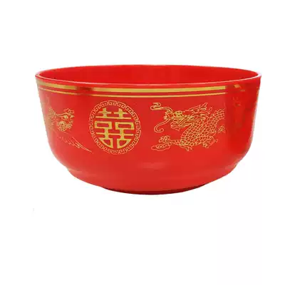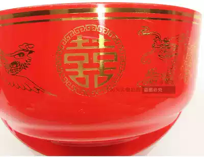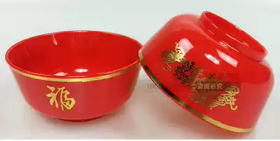 Dragon and phoenix red bowl Plastic bowl Bronzing double happiness large bowl Worship Buddha ceremony Buddha offering bowl Wedding celebration Wedding ceremony Buddha supplies