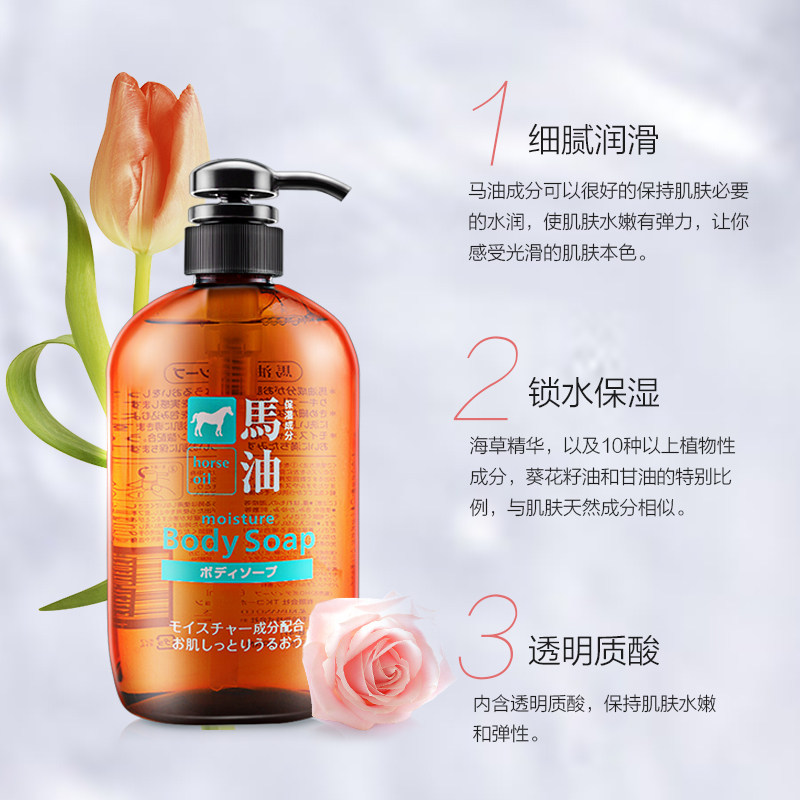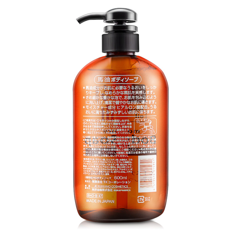 Japan imported Kumano oil colorless no silicone oil Natural weak acid moisturizing horse oil shower gel 600ml