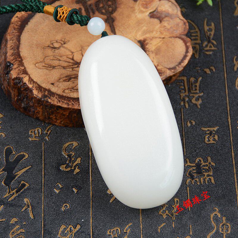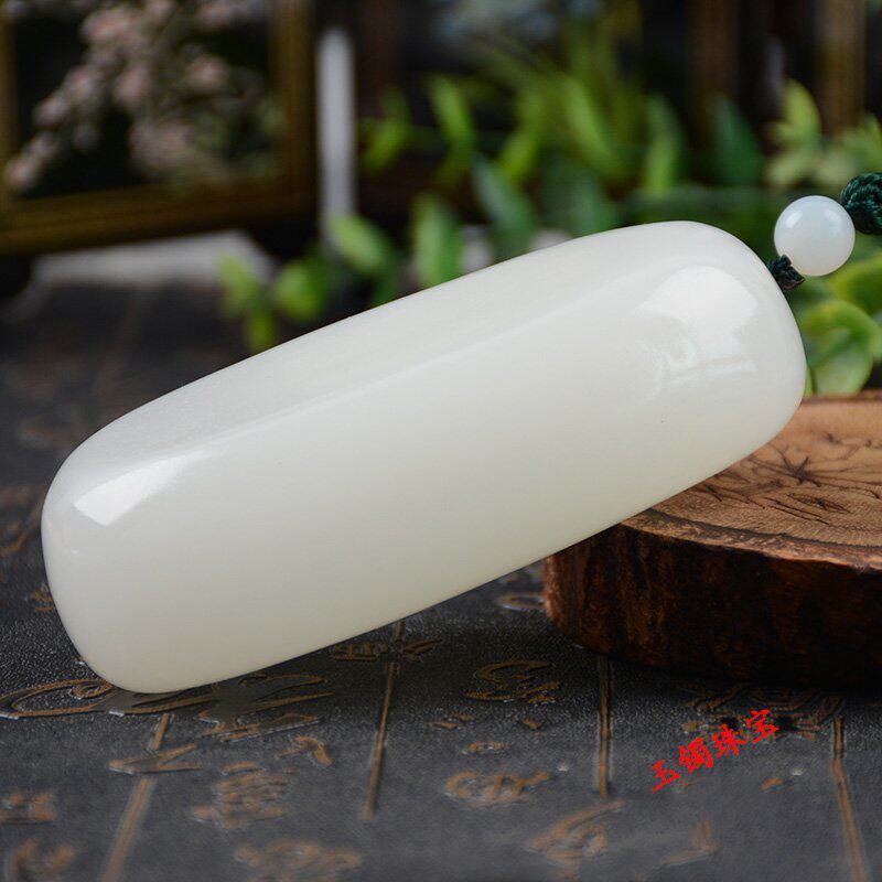 Hetian jade handle piece, bare stone jade, suet fat, white jade document play piece, the seed material is round and delicate