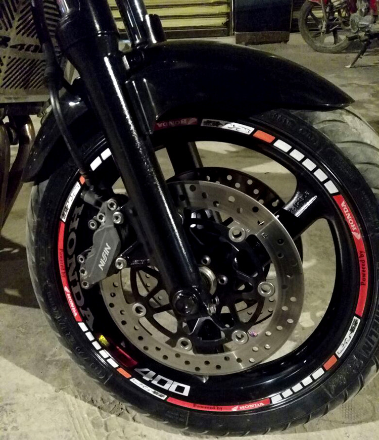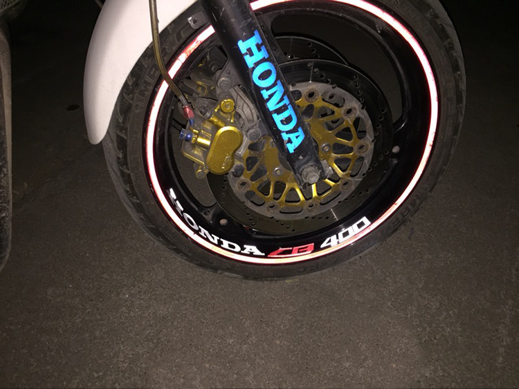 Motorcycle tire reflective patch Motorcycle Bentian wheel sticker CB400 God of War street car text wheel sticker