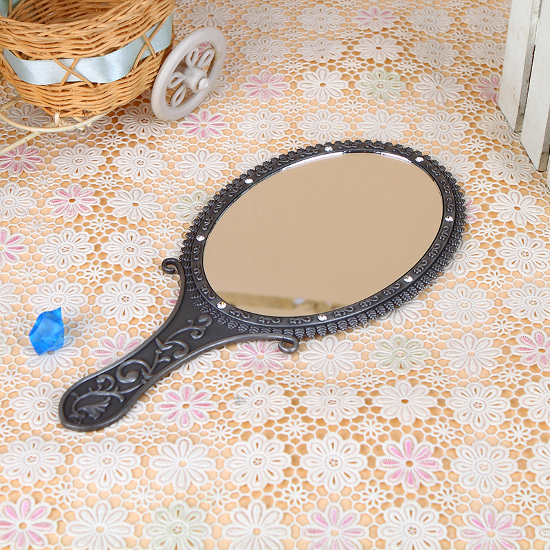 Eurostyle minimalist portable hand with small mirror high-definition bifacial cosmetic mirror retro metal handle Cosmetic Mirror Student Mirror