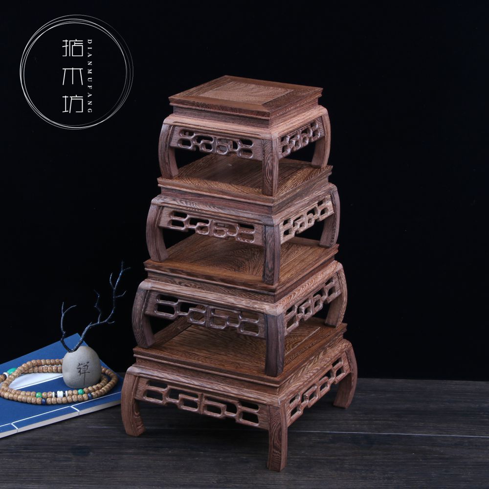Red Wood Carving Pendulum Pieces Handicraft Square Table Chicken Wings Wood Chishite Bonsai Flower Pots Shelf Buddha Furniture Home Accessories Base Special Price