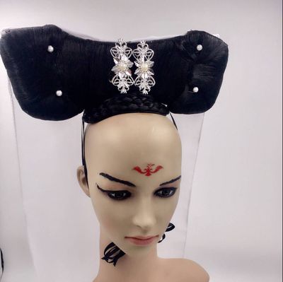 Ancient Clothing Fake Pad Hair Stick Plate Women's Workshop Jade Man Song Wig bun Flag Head Plate Bend White Snake to Flag Head