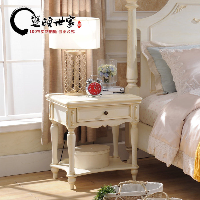 American solid wood European small household bedroom bedside cabinet storage simple white wood ash bed cabinet