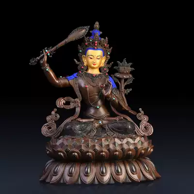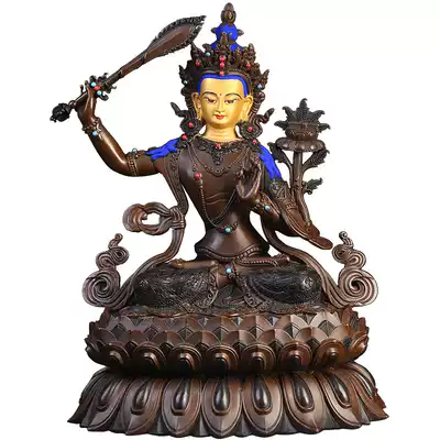 Bainayuan Manjushri Pusha Buddha Statue Exquisite brass Manjushri Bodhisattva ornaments Tibetan Buddhism Tantric face painting face opening
