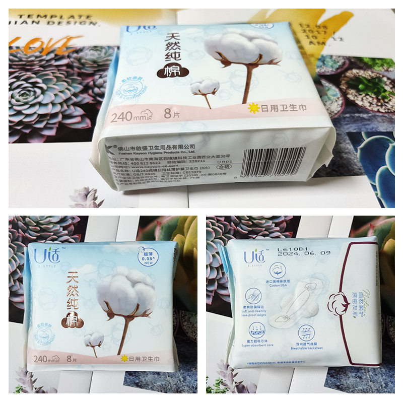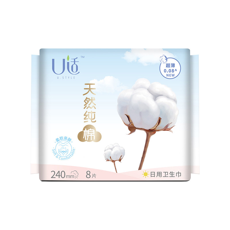 U suitable daily pure cotton 240mm silk thin protective wing sanitary cotton ultra-thin breathable anti-lateral leakage spacer UD01 8 sheet clothing