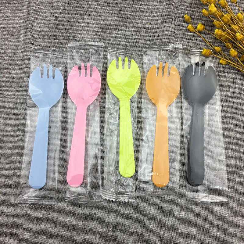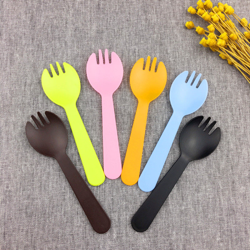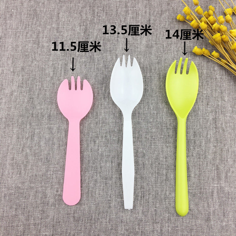 Disposable Fork Spoon Cake Fork Dessert Fork Spoon Ice Cream Spoon Fruit Fork Colored Plastic Fork Spoon 100pcs