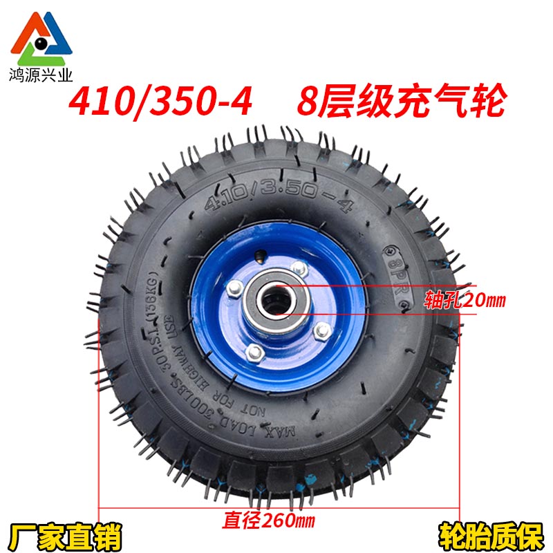 Hongyuan 10 inch pneumatic tire 410 350-4 eight-layer thickened tiger car pneumatic tire trolley accessories