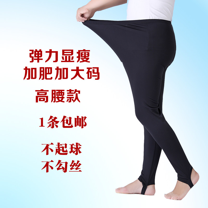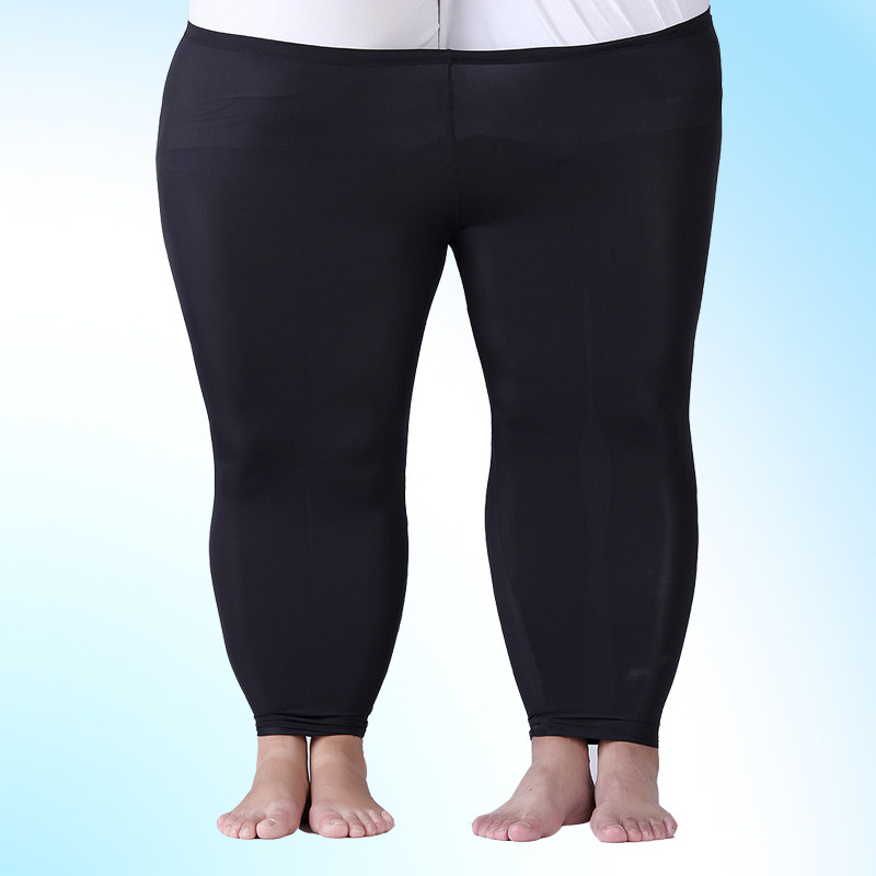 Spring and autumn ice wire bottle outer wearing summer thin gloss small foot trousers female fat mm 200 kg tight pants