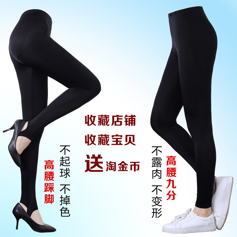 Nine-minute gloss pants step on ice thread Spring and Autumn high waist on pants ice thread Spring and Autumn high waist nine pants