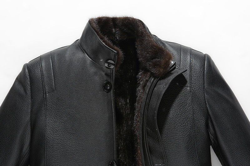 Genuine leather jacket men's cowhide fur all-in-one mink liner stand-up collar mid-length mink coat men's leather jacket thick