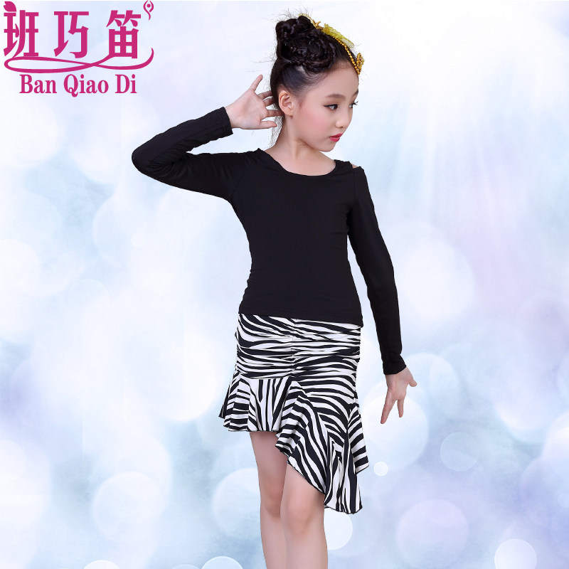 Clear spring and summer adult Latin dance long sleeve skirt plus suit children zebra-grain dance suit