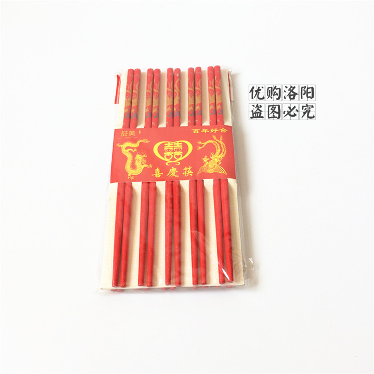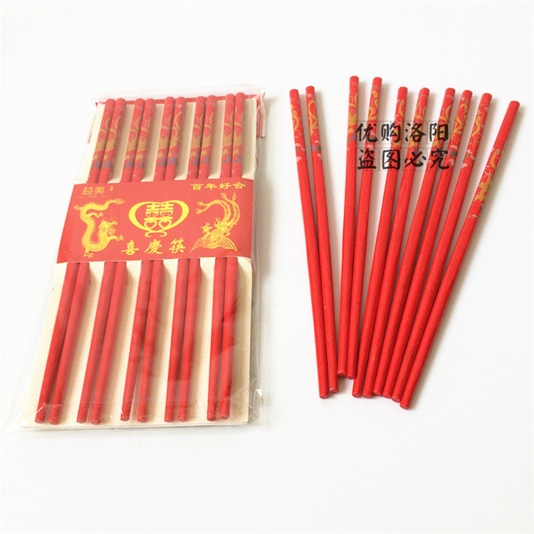 Festive wooden chopsticks Wedding dragon Phoenix red chopsticks Household wedding gift chopsticks Couple chopsticks Happy event return special chopsticks