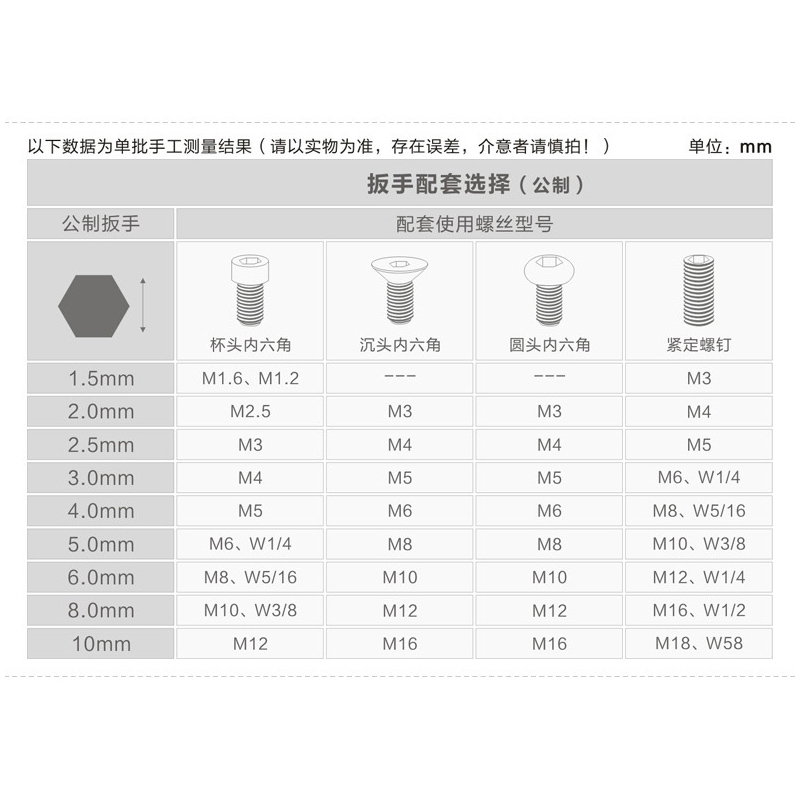 1 5mm2mm2 5mm3mm4mm5mm6mm8mm10mm9pcs set(1 5mm-10mm)1 27mm (Silver white)