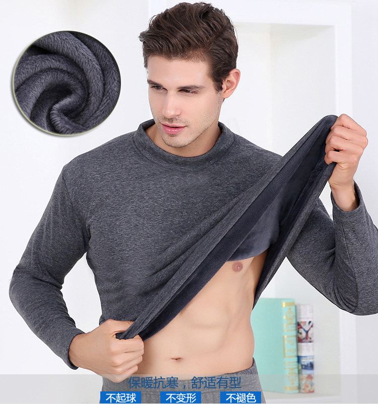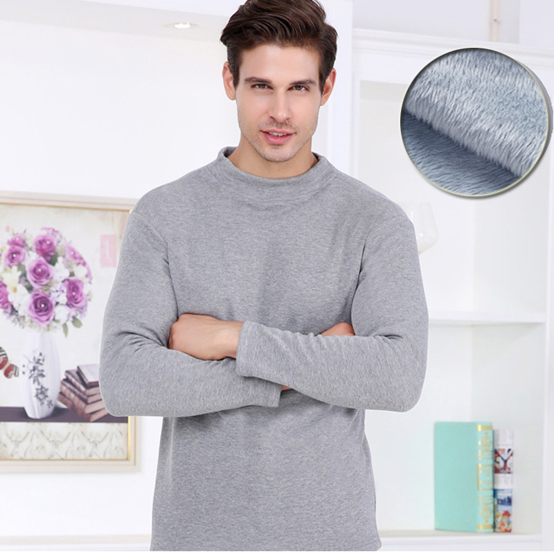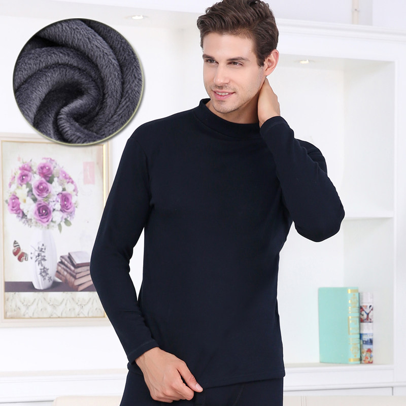 Green middle aged pure cotton male in high collar plus suede thickened thermal underwear single piece blouse for old man cotton wool bottom autumn clothes