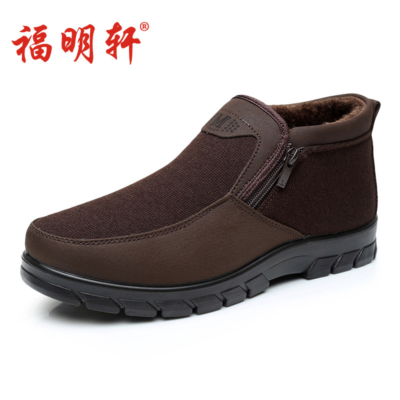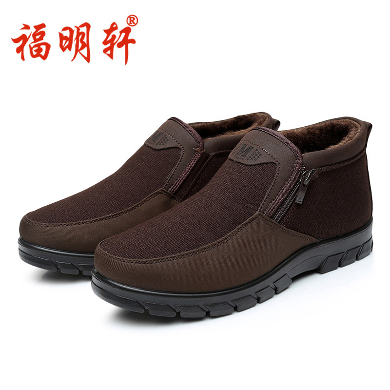 Winter warm plus velvet cotton boots old Beijing cloth shoes elderly cotton shoes men's middle-aged and elderly dad shoes thickened high-top non-slip