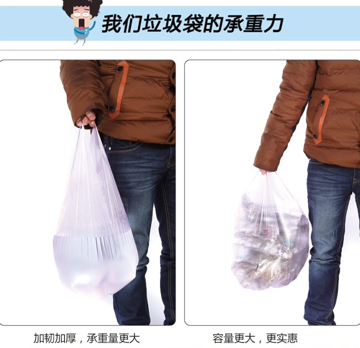 8 Roll and thicken garbage bag large vest household garbage bag plastic bag handbag kitchen cleaning bag bag bag
