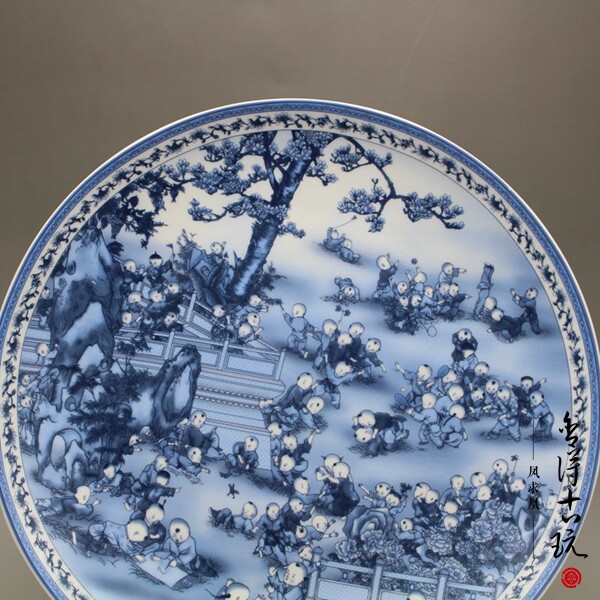 Antique ceramics Blue and white plate Baizitu porcelain plate Modern home decoration 26CM sitting plate hanging plate swing plate
