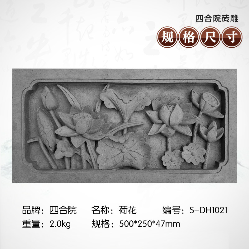 Courtyard brick carving antique door head pendant relief back shadow wall green wall tile 50 * 25cm lotus dh1021 photo wall