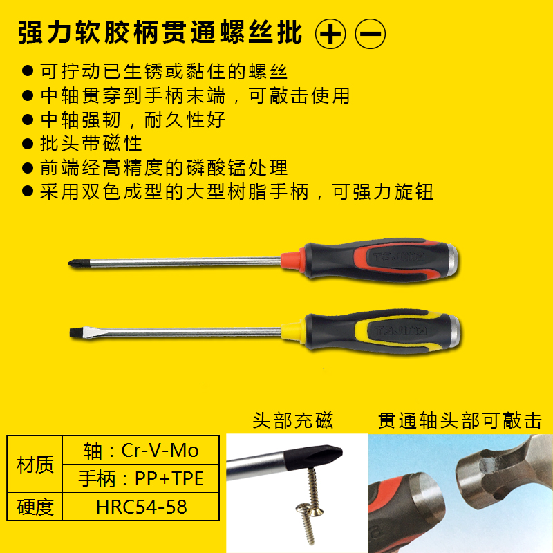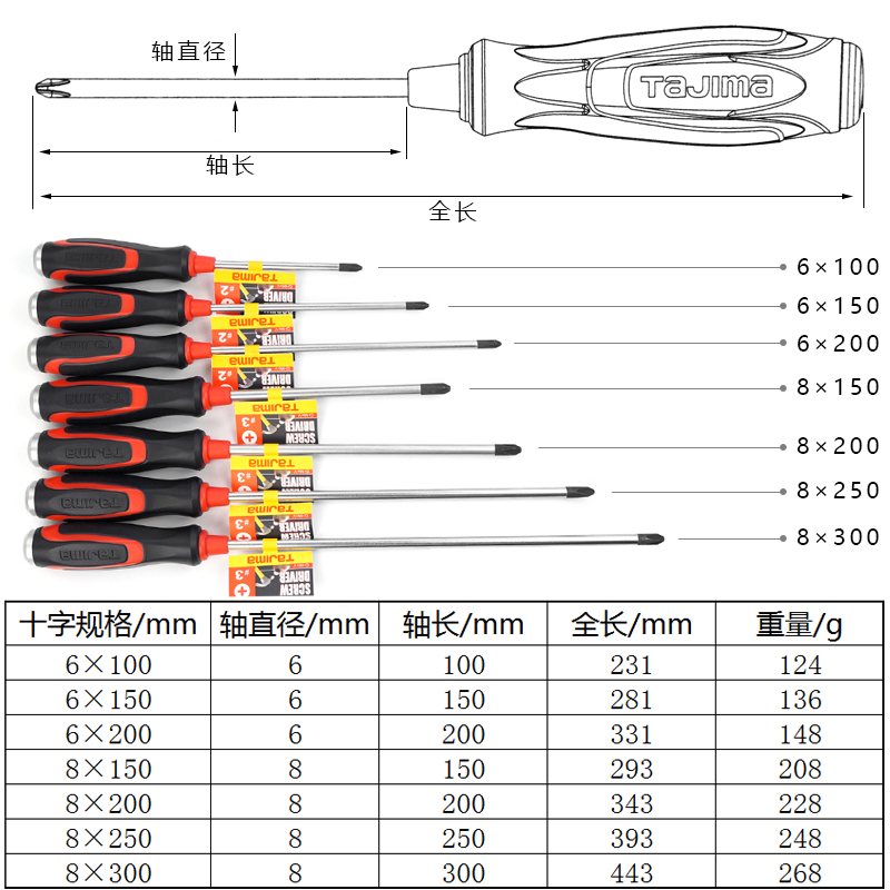 Japan tajima Tashima screwdriver Cross word strong magnetic through type can be struck strong soft plastic handle screwdriver
