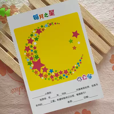 Monthly Star Kindergarten Award Praise Card Prizes Children encourage small awards Children's award paper 5 sheets a set