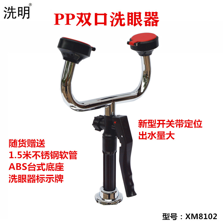 PP double port eye washer stainless steel handle PP double port eye washer New PP double port eye washer