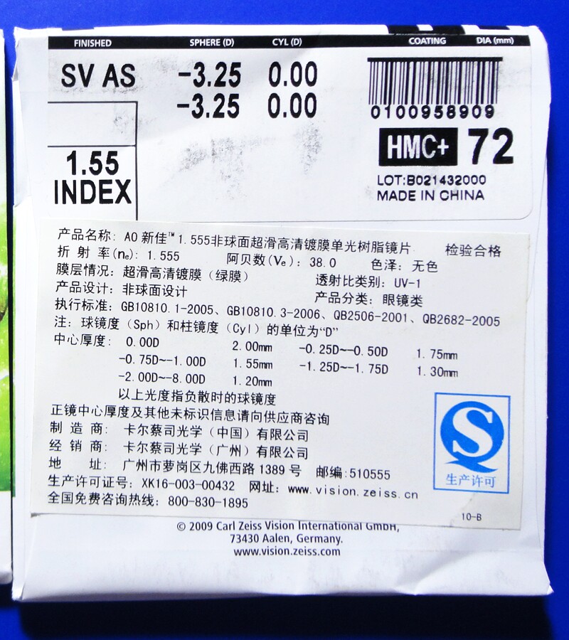 The Cai Division glasses piece a pair of Apple AO Xinjia 1 56 aspherical light myopia radiation-resistant high-definition green film eye sheet