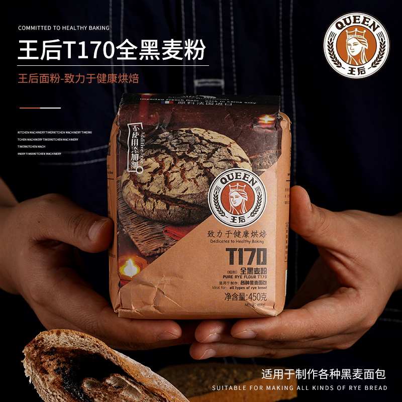 Queen T170 Black whole wheat flour 0 Bread rye flour contains Queen wheat bran fat Household baking Non-sugar-free special