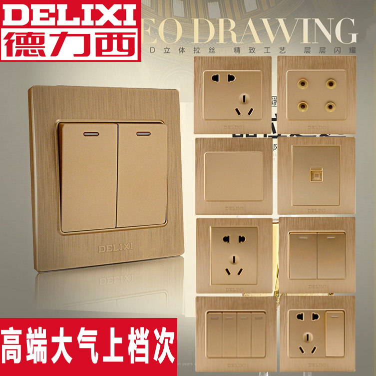TV Phone Computer plugged in Phone computer One doorbell switch Seven holes TV plug-in TV open 5-hole open multi-control switch Phone plug USB with five holes four open double cut closed Champagne gold blank face