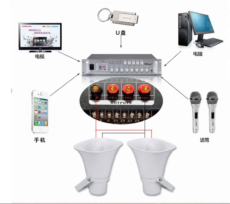 Treble horn horn school village broadcast background music car horn outdoor waterproof audio high power