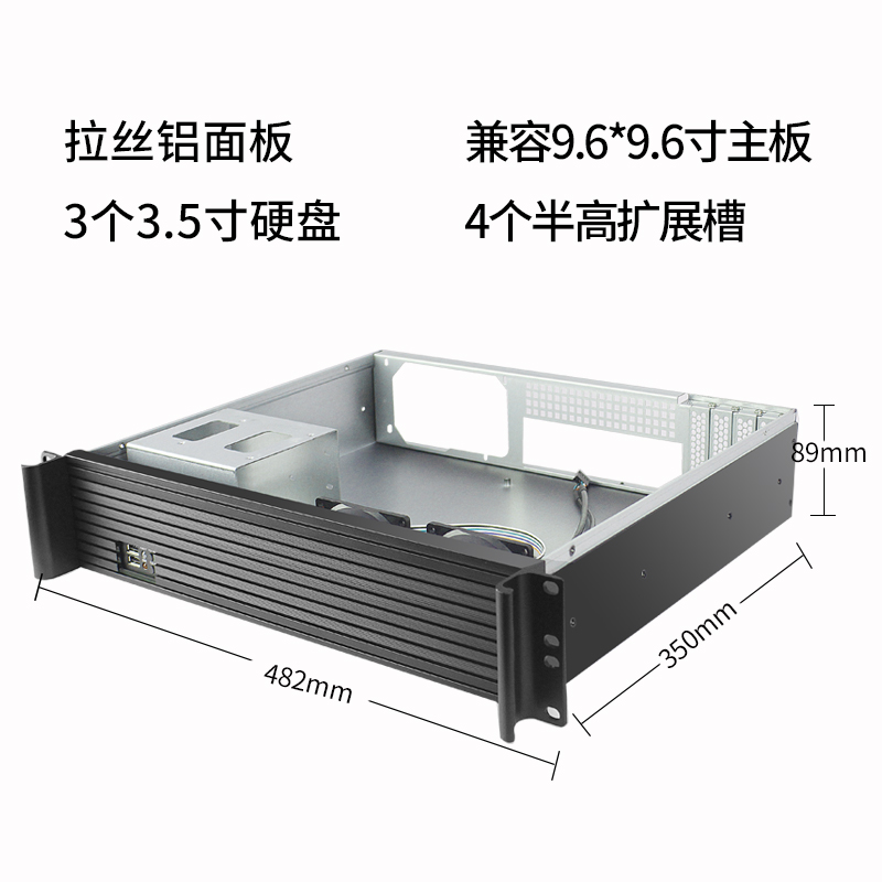 2u main shell short 350MM deep rack-mounted ATX power supply aluminum alloy panel industrial computer room server customization