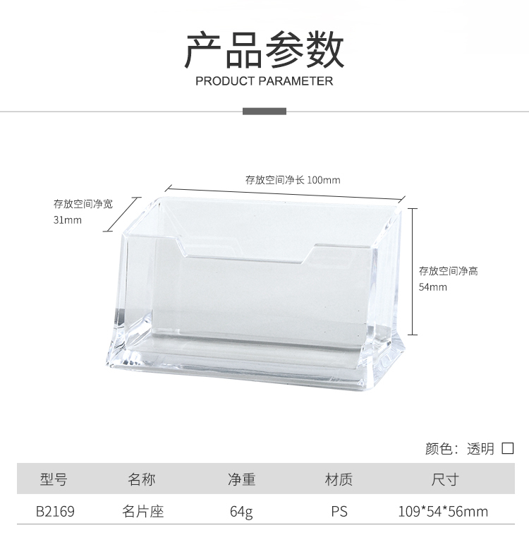 Qixin B2169 transparent business card holder single-cell business card holder business card holder storage display collection box plastic business card box