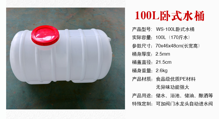 400L food grade horizontal water tower water tank thickened horizontal water storage tank Chemical thickened solar water storage tank
