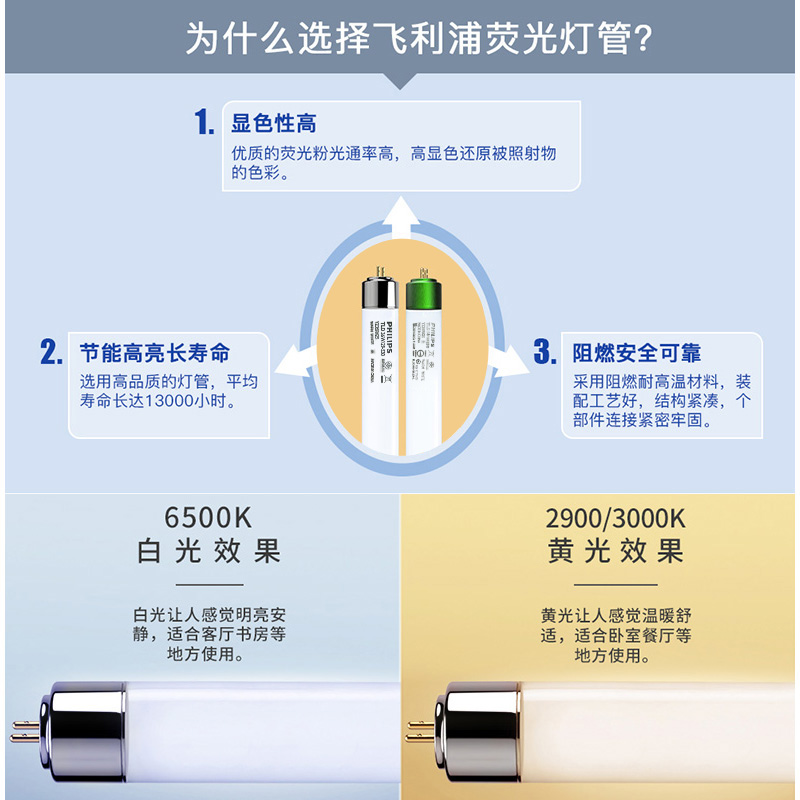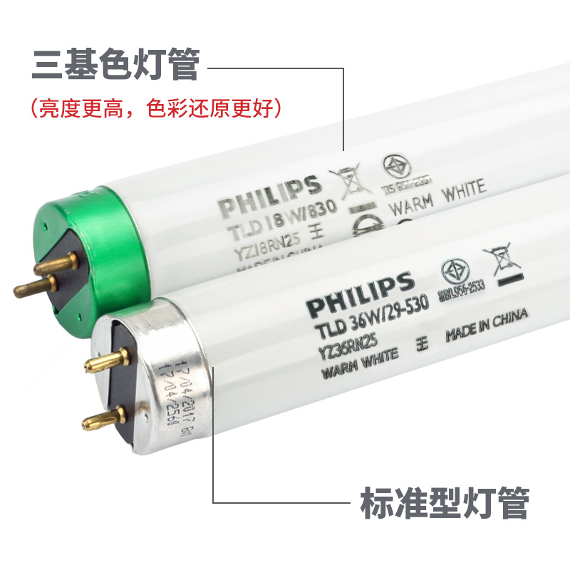 Philips t5t8 three-base color daylight lamp tube old strip home 865 electric bar fluorescent light stick 18w 36w