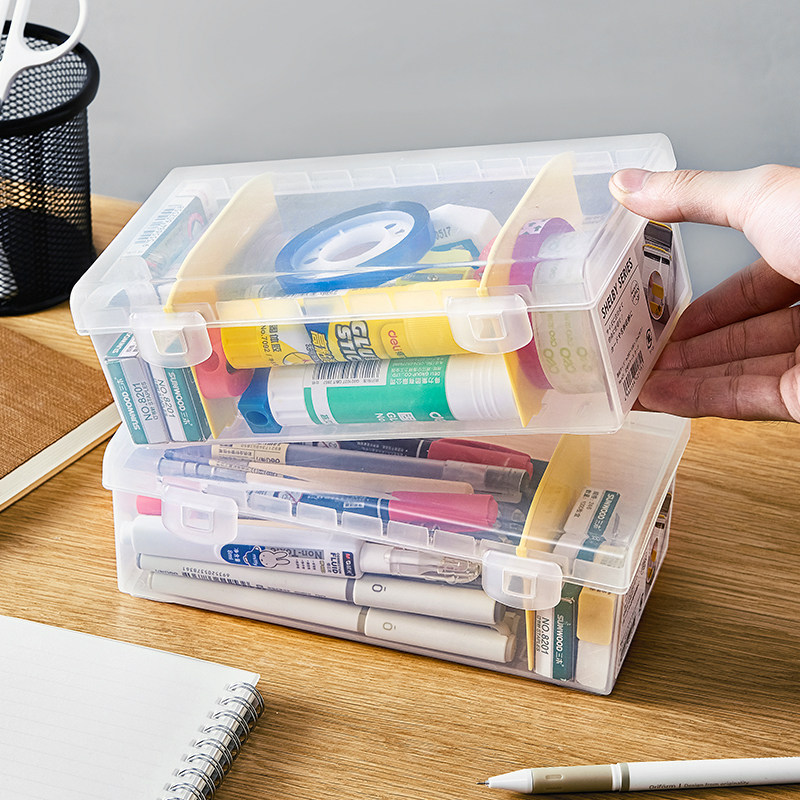 Imported from Japan sub-compartment storage box desk surface rectangular plastic small object finishing box flip cover storage box