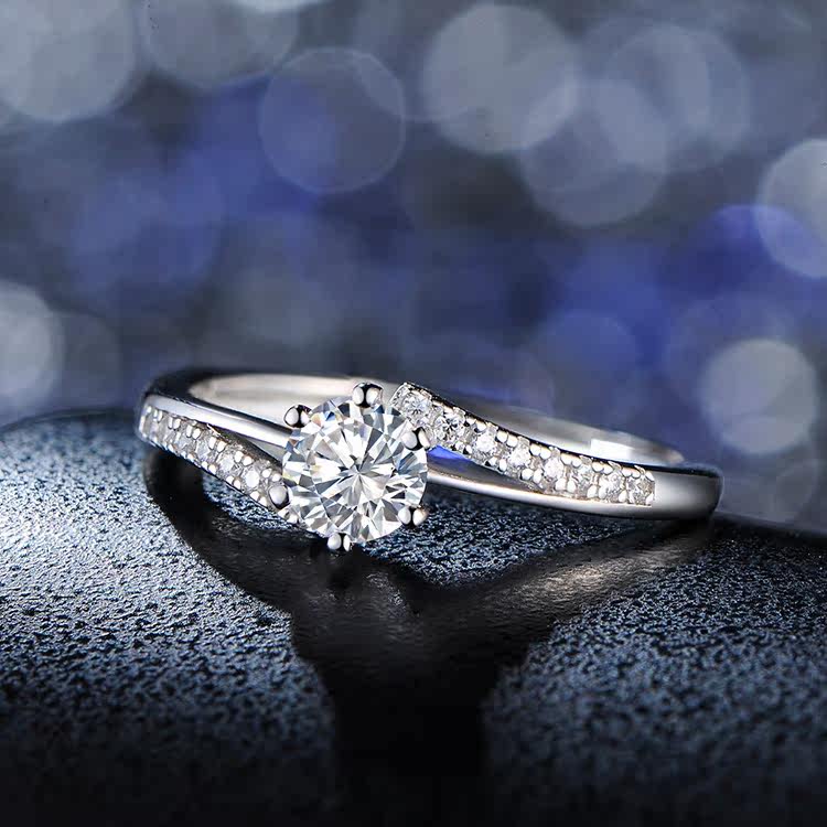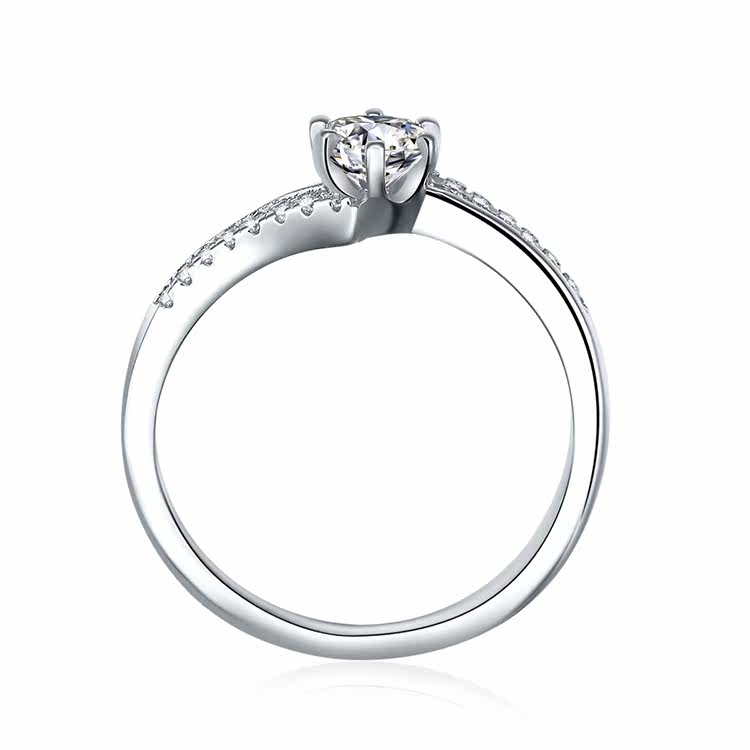 White 18K gold six-claw diamond ring group inlaid diamond ring inlaid diamond wedding female ring female