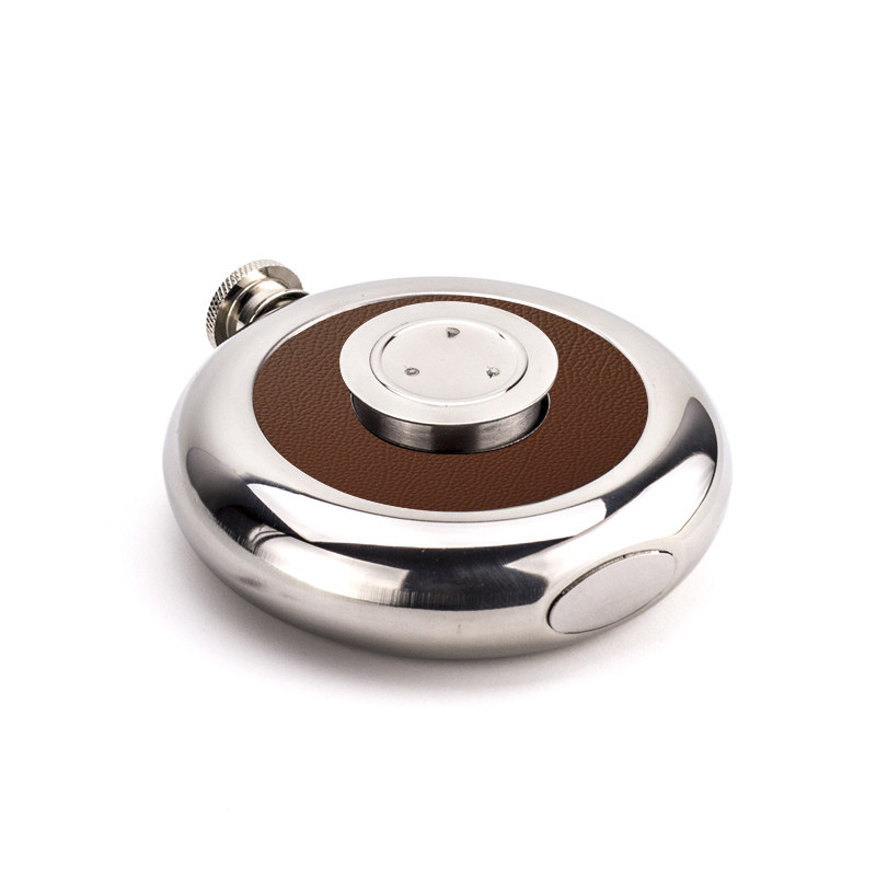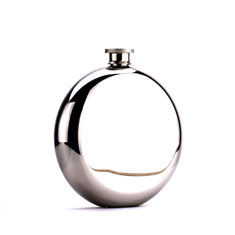 Round carry outdoor portable small wine jug Russia 304 stainless steel thickened 5 oz cake type mini